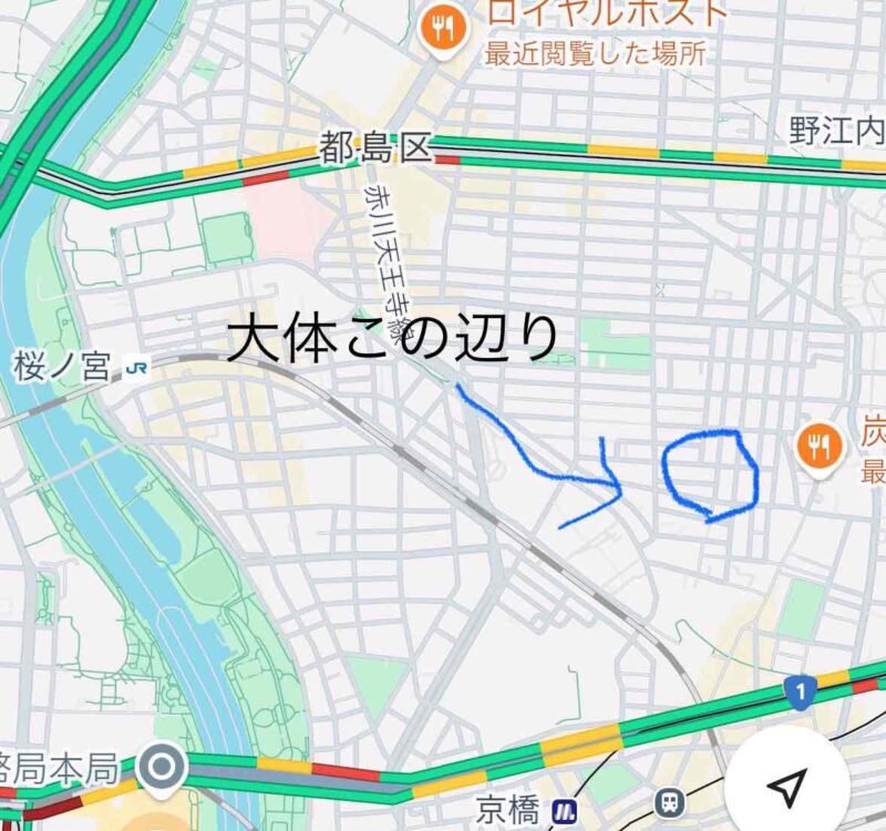 思い切って地下鉄野江内代駅もしくは京橋駅”方面”に移動します。